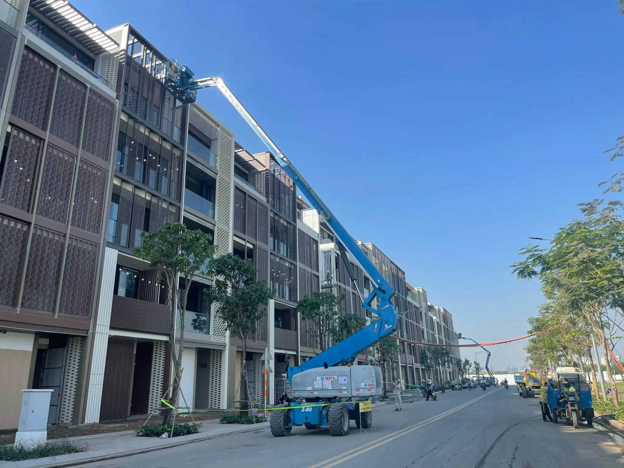 - Xe nâng cần khớp gập (Z-Boom): Giúp tiếp cận các vị trí khó phía trên mái nhà phố hoặc các cấu kiện trang trí mặt ngoài căn nhà biệt thự hay Shophouse tại Global City.