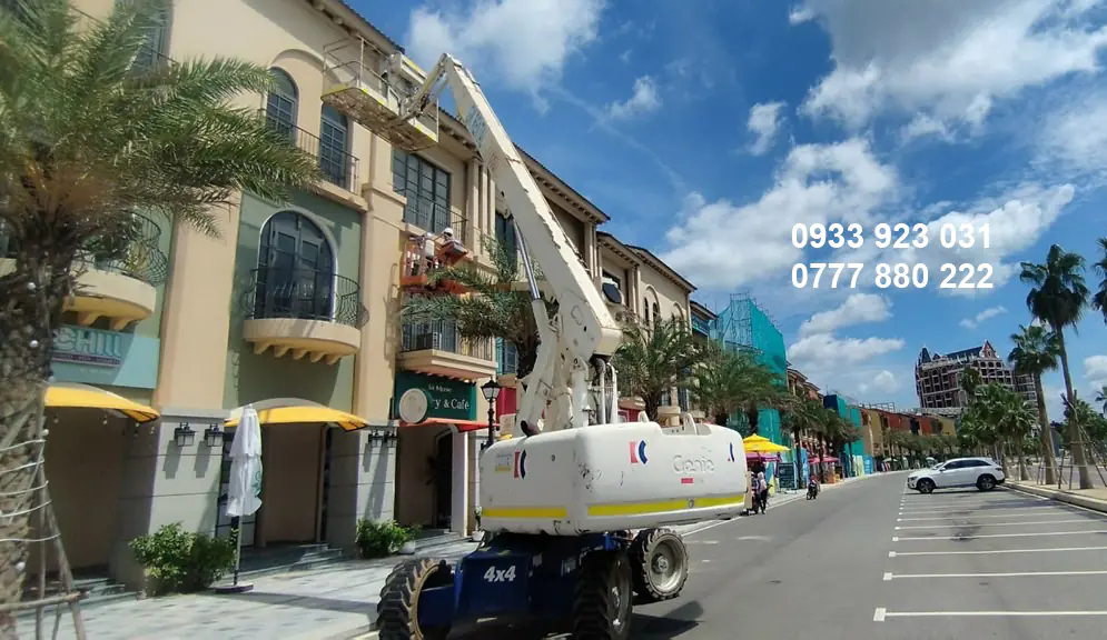 - Thi công Shophouse & Biệt thự: Các dòng xe cắt kéo (Scissor Lift) từ 8m - 18m hỗ trợ lắp đặt hệ thống điện, nước và trang trí ngoại thất.